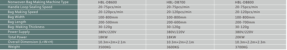 This. machine is suitable for non woven fabric material only, it is the most advanced equipment and has the functionof full automatic handie loop sealing. The speed is about 20-75 pcs/min, it equals to 5 workers operating 5 handlesealing machines. It can fully automatic make non woven bag products; with diferent bag type and size, as handieattached bags, T-shirt bags (vest bags), box bags, flat bags, drawstring bags and so on. It has widely used inclothing, footwear, wine, gifts packaging etc. The machine can instead of the traditional hand-sewing and reducinglabor and manufacturing costs. It's very popular in worldwide.