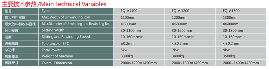 该机适用于BOPP、CPP、CPE、PVC、PE、铝箔、纸张等各种卷状材料的分条、在生产过程中根据不同需要对材料进行切边、分切等。